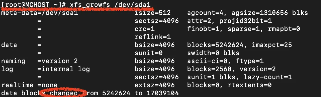 그럼 changed from 이라고 나오면서 용량이 변경된 것을 확인할 수 있습니다.