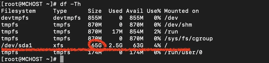 남은 용량 확인인 및 전체 디스크 용량 확인은 df -Th 명령어로 확인할 수 있습니다.