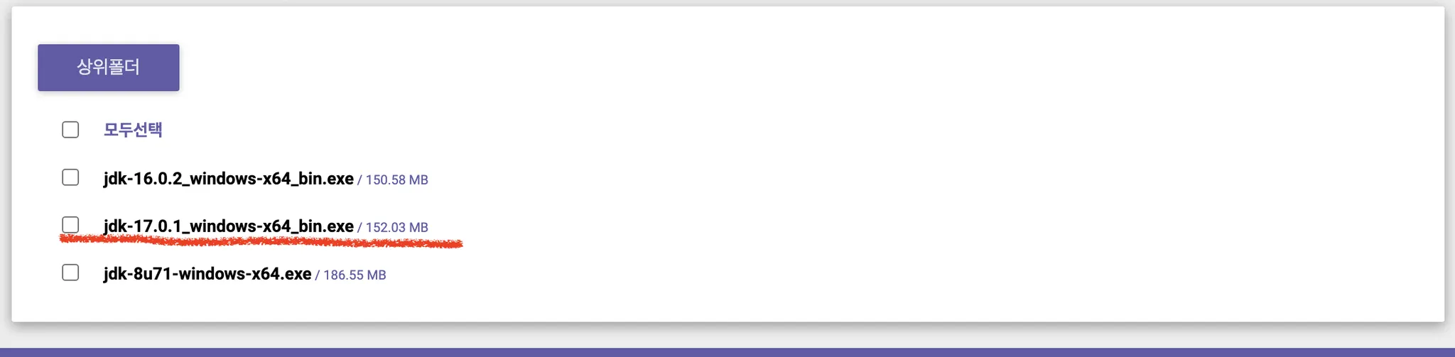 jdk-17.0.1_windows-x64_bin.exe 파일을 다운로드 후 설치해 주세요.