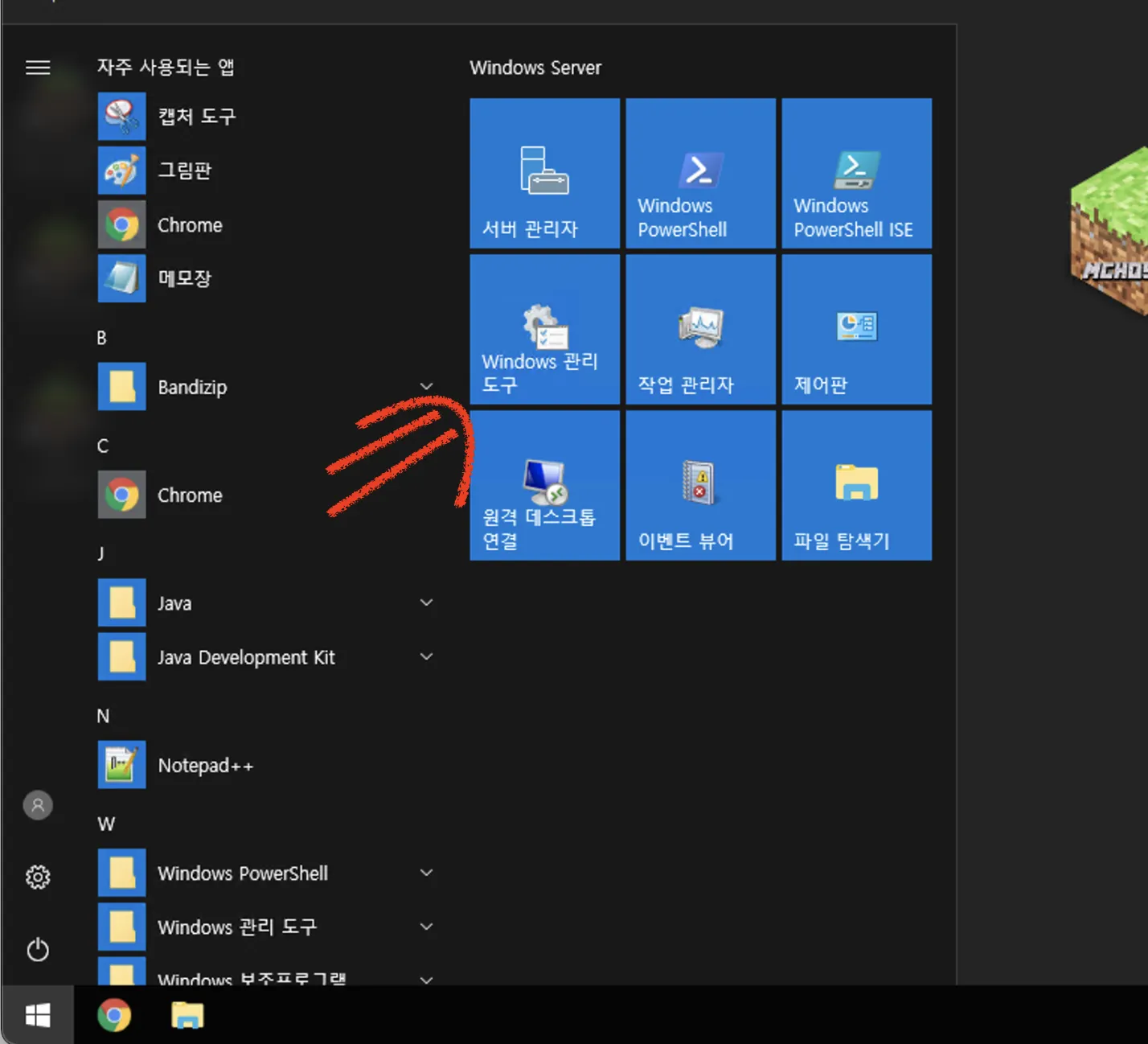 시작 버튼을 클릭 후 "Windows 관리 도구" 를 클릭 합니다.
