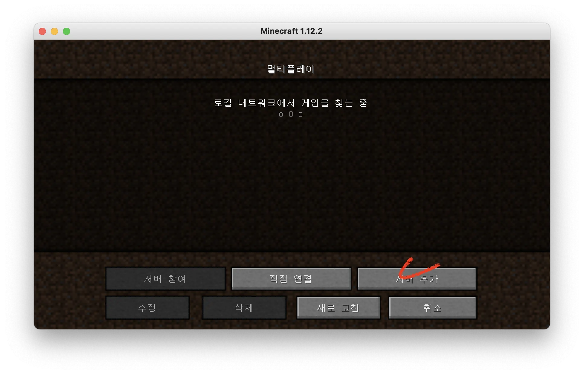 마인크래프트 멀티플레이에서 → 서버추가를 클릭 해주세요.