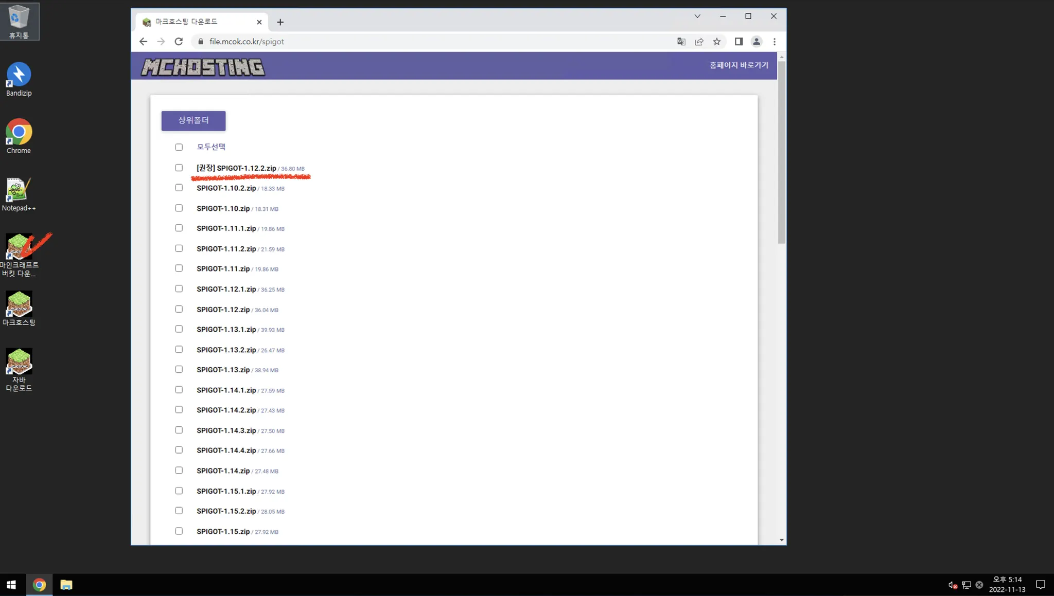 사이트에 접속 후 Bukkit → PC 버전 [JavaEdit] → 일반버킷 → 스피고(SPIGOT) 순서로 접속해주세요.