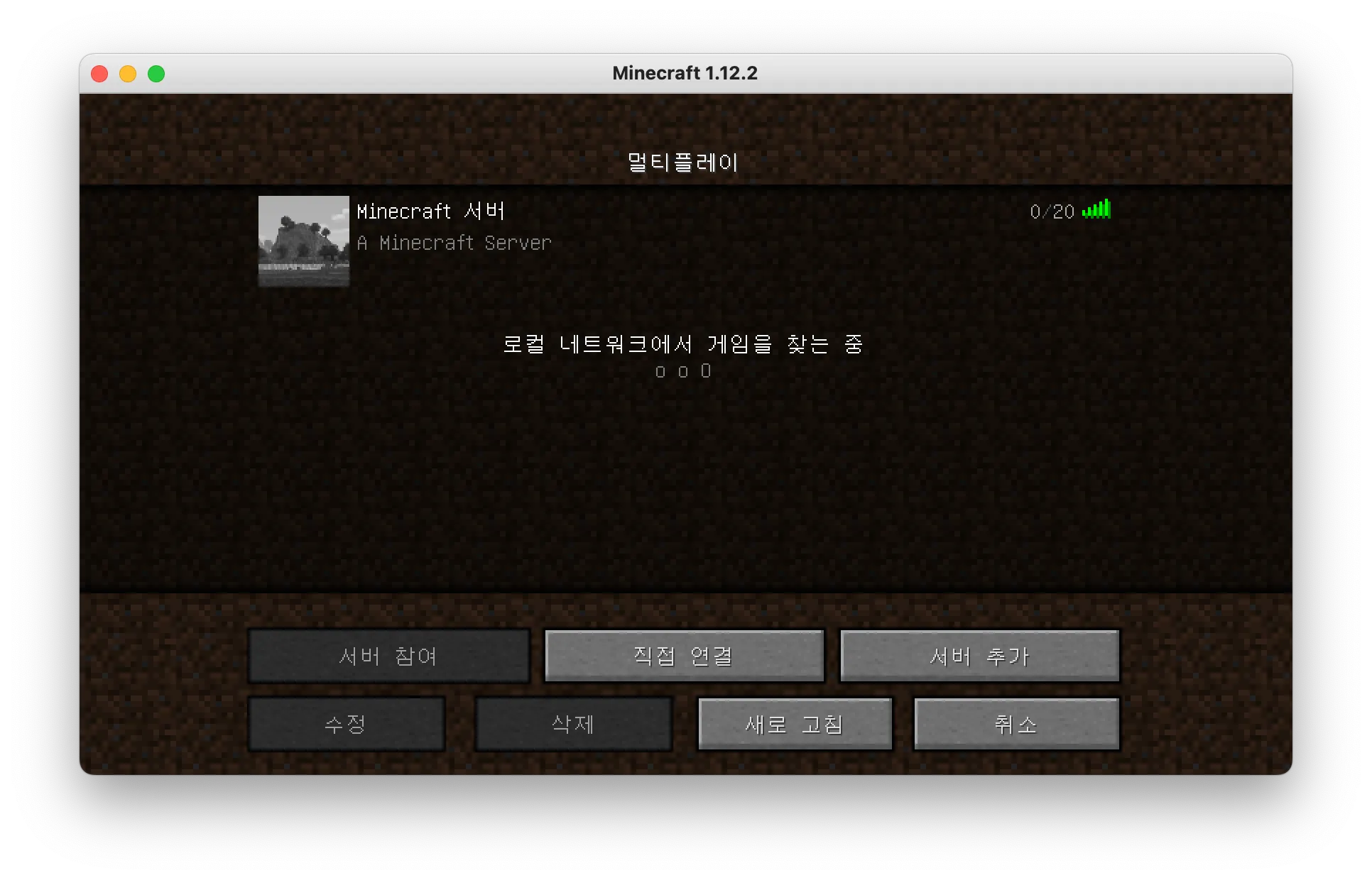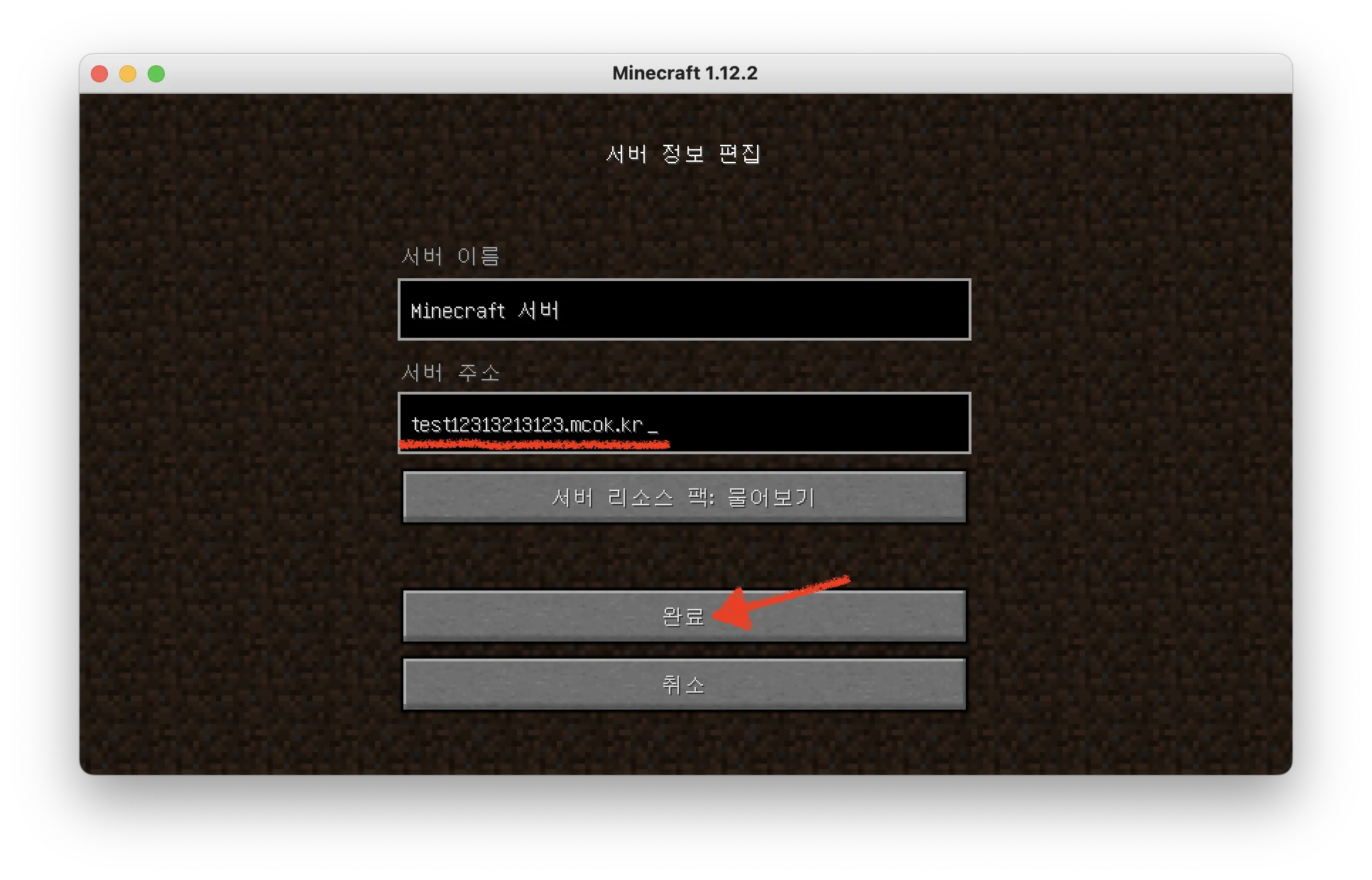 정상적으로 추가 된 서버를 클릭하시면 고객님의 마인크래프트 서버에 접속하실 수 있습니다