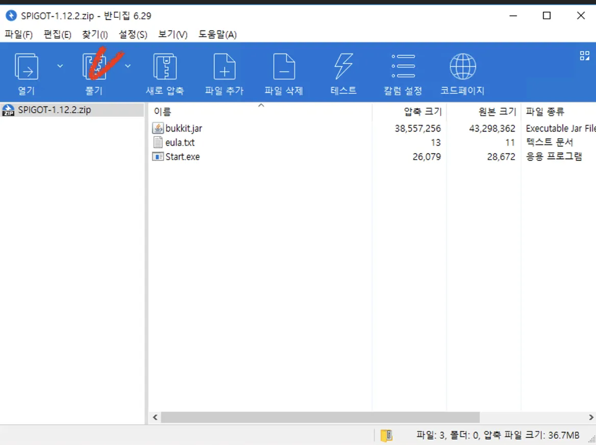 다운로드 받으신 서버 버킷을 바탕화면으로 이동해주신 후 압축을 해제 해주세요.