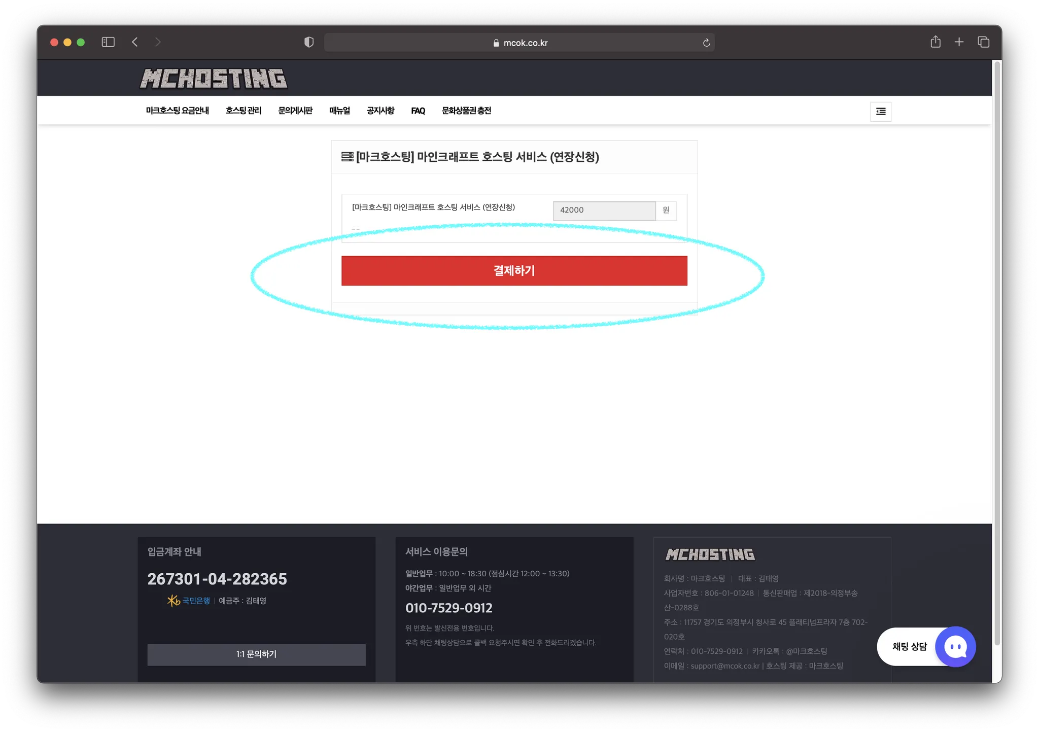 마지막 페이지에 나오는 계좌와 입금자명으로 결제 해주시면 자동으로 연장처리 됩니다.