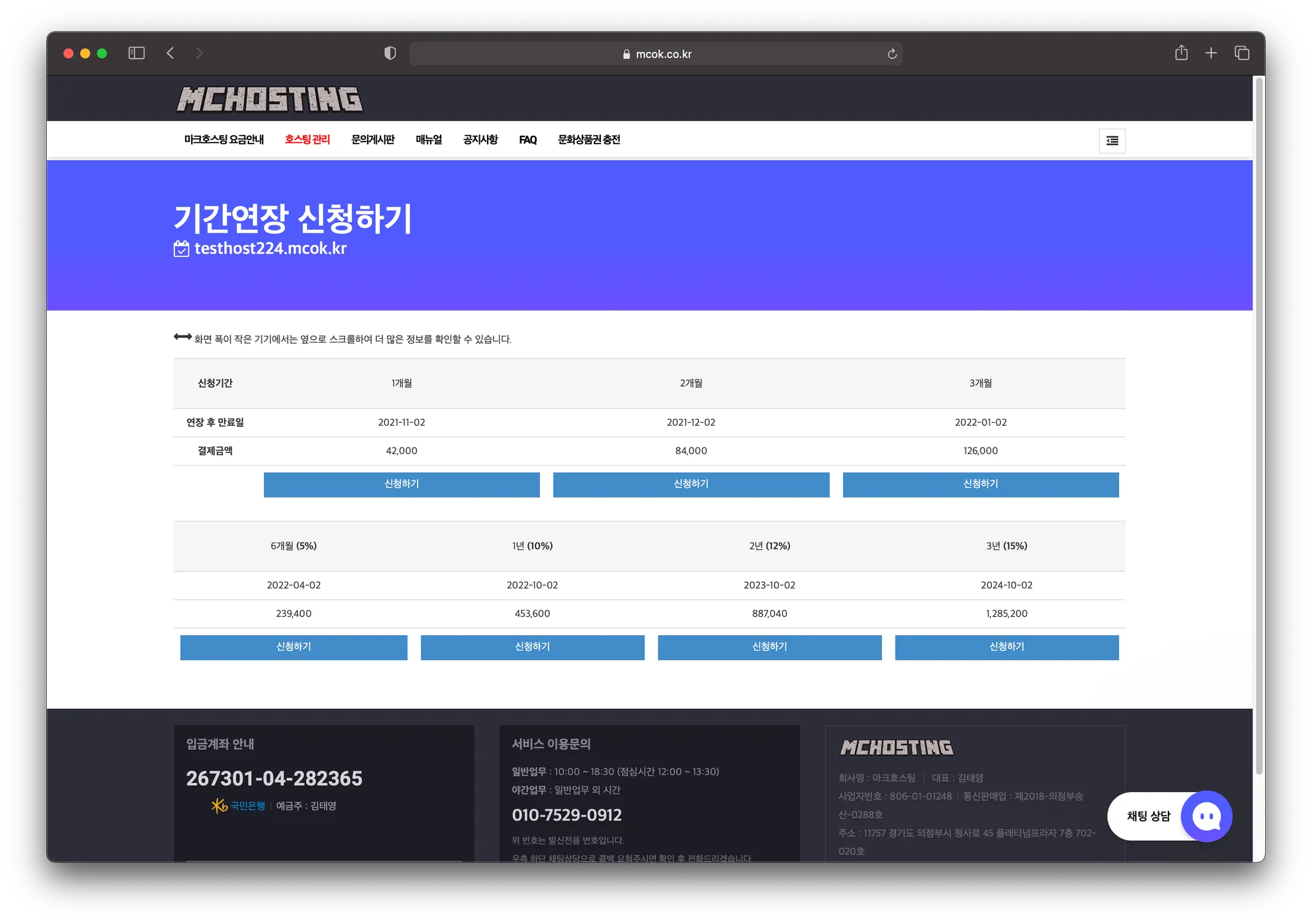 호스팅 연장신청을 아래 방법대로 진행해주시면 자동으로 처리 됩니다.